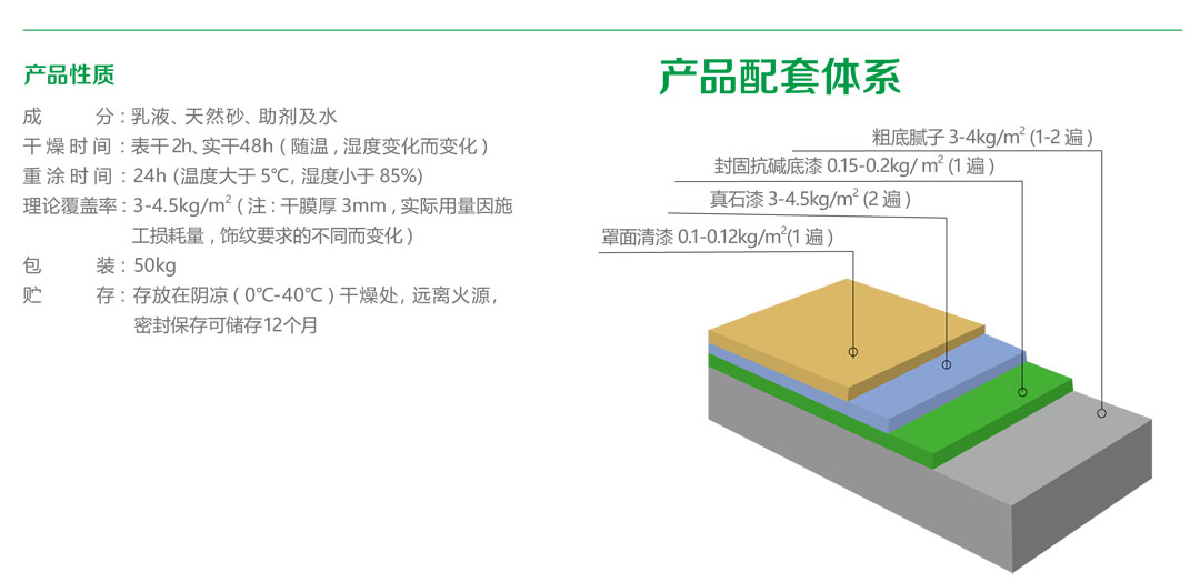 天然真石漆是由環(huán)保型高分子乳液聚合物和能構(gòu)成仿石材紋理的天然大理石骨料、助劑等材料組成的厚質(zhì)涂料 , 其外觀如石頭一般自然、穩(wěn)重、氣派并且附著牢固 , 具有優(yōu)異的耐候性、憎水透氣性、柔韌性和抗沖擊性 , 符合國家規(guī)定的 JG/T24《合成樹脂乳液砂壁狀涂料》標(biāo)準(zhǔn)。其裝飾性具有很強的仿石材及歐式風(fēng)格效果 , 是當(dāng)今社會高檔小區(qū)、別墅、公共建筑的主流裝飾材料。適用于所有平整的建筑物內(nèi)、外墻礦物質(zhì)材料基層 ,同時也是外墻外保溫體系理想的面層裝飾材料。